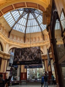 Le CBD, le centre de Melbourne est un quadrillage de rues bien large, se croisant à angle droit. Enfin ça c’est la première impression. mais une simple porte peut cacher une galerie marchande sur plusieurs étages ou une ruelle bordée de petites boutiques ou un mix des deux.